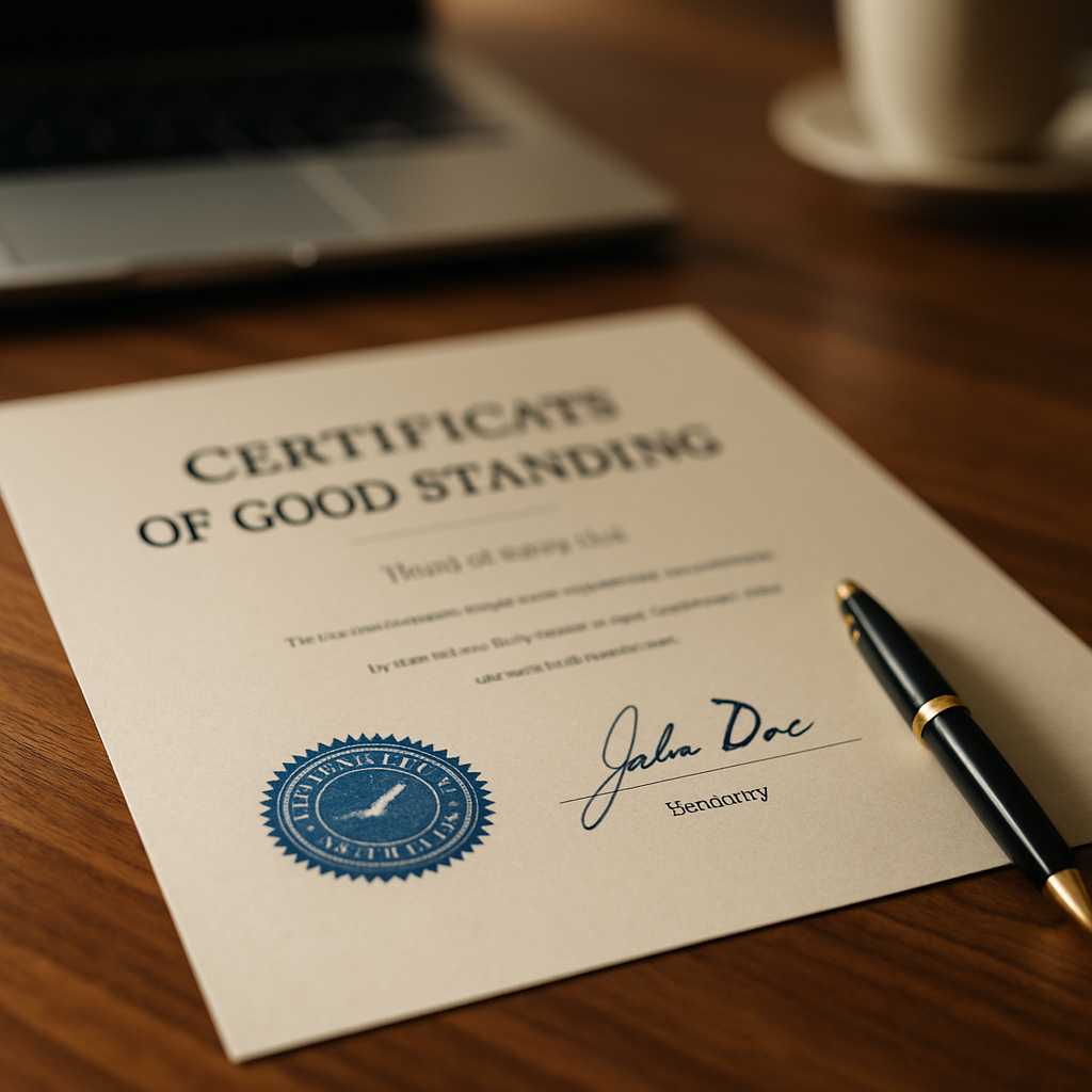 Understanding the Certificate of Good Standing A Certificate of Good Standing is an official document issued by a state authority that confirms a business entity is compliant with state regulations. This certificate is often required for various purposes, including applying for loans, entering contracts, or expanding into new markets. The document typically includes information such […]